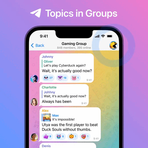 « Les sujets fonctionnent comme des discussions individuelles au sein du groupe, avec leurs propres médias partagés et leurs propres paramètres de notification. Les membres sont libres de discuter de n’importe quel sujet, de l’anime à la zoologie, en utilisant toutes leurs fonctions préférées comme les sondages, les messages épinglés et les robots. Cette fonctionnalité est destinée spécifiquement aux grands groupes, ajoutant de nouvelles façons de personnaliser leurs discussions et de promouvoir le débat. Plus tard dans l’année, nous prévoyons d’introduire un ensemble différent d’outils, adaptés aux petits groupes », explique Telegram.