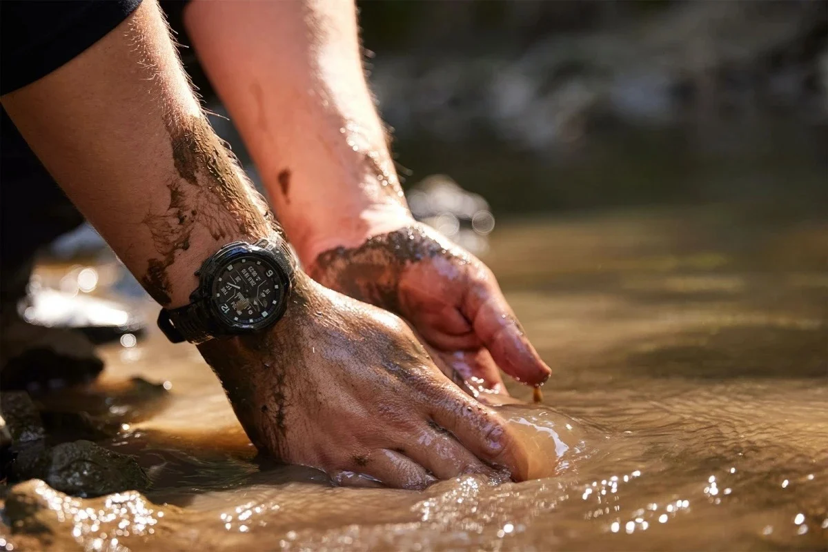 Sans surprise, la Instinct Crossover est également extrêmement robuste, survivante non seulement à une immersion dans l’eau jusqu’à une profondeur de 100 mètres avec facilité, mais aussi à des conditions météorologiques extrêmes et à divers chocs, y compris vraisemblablement des chutes sur des surfaces dures.