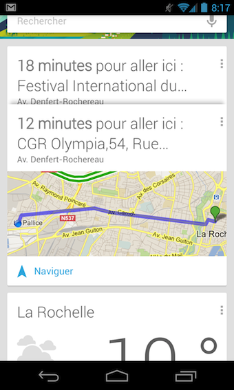 Alors que la majorité des développeurs attendent une API dédiée à Google Now, à ce jour ces derniers ne peuvent pas encore faire leurs propres cartes pour le service. Pourtant, Google devrait les laisser mettre leurs mains sur Google Now ! En effet, je ne serais pas étonné de voir des cartes vraiment innovantes, d’autant plus avec l’arrivée de la widget.