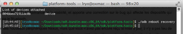 adb reboot recovery. Vous verrez alors un Android avec un point d’exclamation indiquant “Aucune commande”