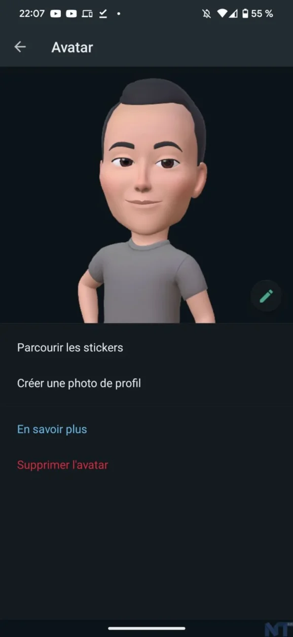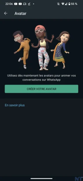 Vous pouvez créer un avatar pour WhatsApp à utiliser comme photo de profil ou comme pack d’autocollants, et vous pouvez en savoir plus sur cette fonctionnalité ici.