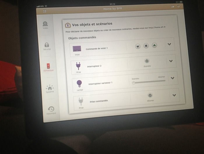 Ensuite, vous devez souscrire à un abonnement “Home by SFR”. A partir de 9,99€/mois, permettant à tous les équipements connectés de la maison (alarme, détecteurs de mouvements, d’ouverture, prise connectée, etc.) de communiquer avec la centrale.