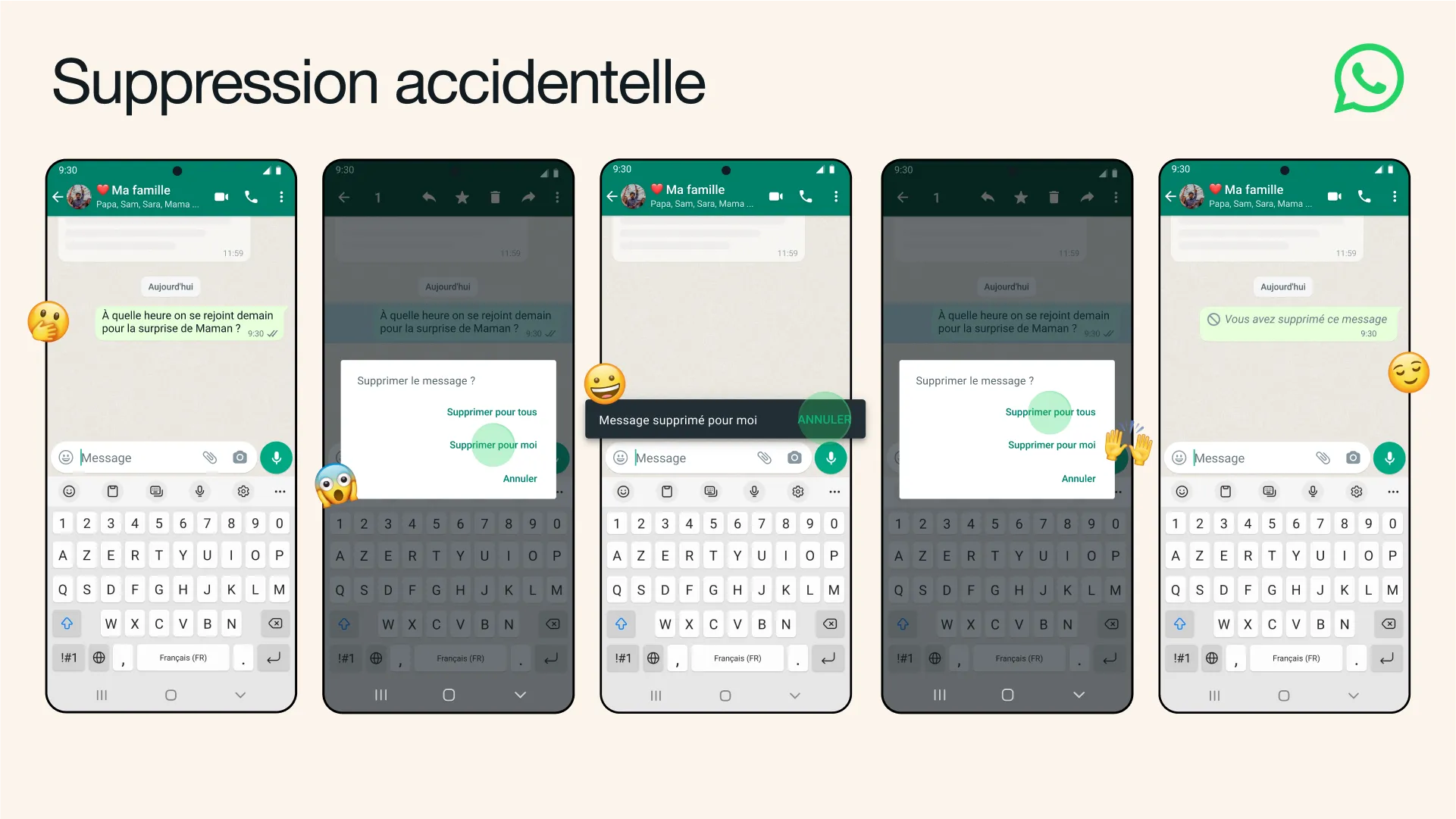 Depuis la version bêta v2.22.18.13 de WhatsApp, la firme a testé une fonctionnalité qui permet aux utilisateurs d’annuler les messages supprimés. Maintenant, cette fonctionnalité, surnommée « Suppression accidentelle », est déployée à un public plus large par une version stable pour les applications Android et iOS.