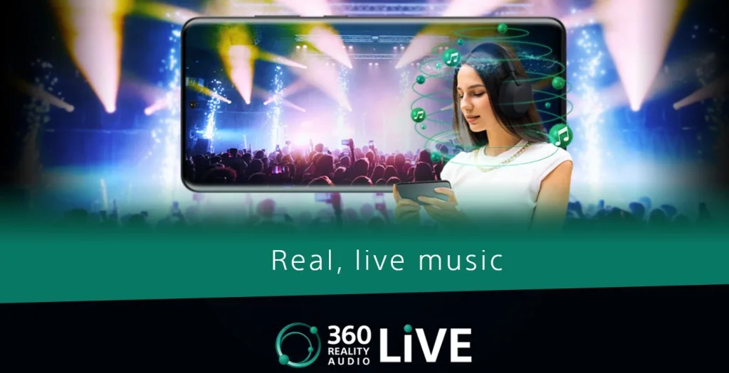 La technologie 360 Spatial Sound de Sony permet la diffusion en temps réel de sons et de vidéos tridimensionnels avec « 360 Reality Audio », afin que les clients puissent profiter d’un spectacle ou d’un concert en direct sans être présents.