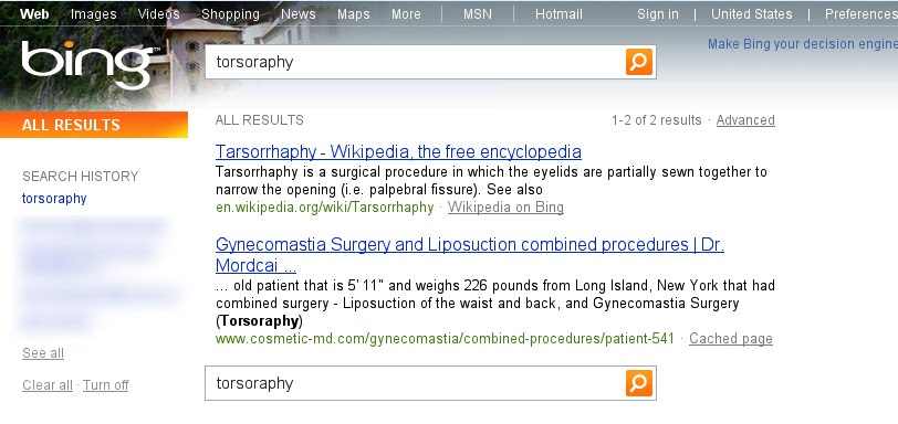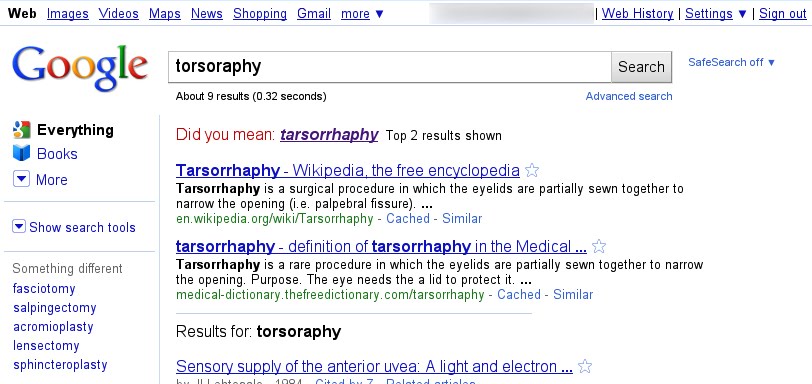 Google explique que tout a commencé avec le mot “tarsorrhaphy” (opération chirurgicale rare sur les paupières, pour la petite histoire…). Durant l’été 2010, ils ont examiné les résultats de recherche pour une requête inhabituelle et mal orthographiée : “torsorophy“. Google a immédiatement corrigé l’orthographe ainsi que les résultats pour cette requête. A cette époque, Bing n’avait aucun résultat lors de la recherche sur le mot mal orthographié.