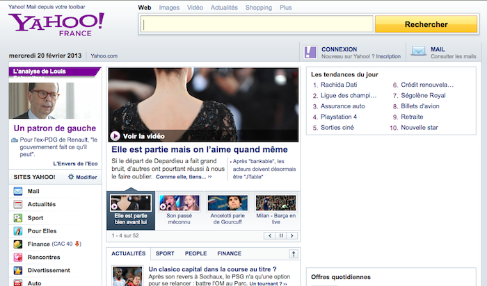 Au cours des prochains jours, Yahoo va remplacer sa page d’accueil encombrée de liens avec une expérience utilisateur simplifiée et plus “moderne”. Les principaux services de Yahoo, Mail, Actualités, Finance et Sport – restent en vedette sur la gauche de la page, avec de nouveaux icônes qui ont été récupérés à partir d’un catalogue de cliparts.