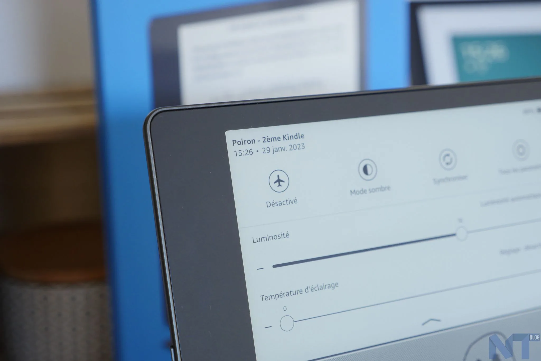 Le Kindle Scribe est doté d’un écran e-ink de 10,2 pouces. Il affiche une résolution de 300 pixels par pouce et possède un revêtement anti-reflet. Comme d’autres Kindle haut de gamme, le Scribe propose un réglage automatique de la luminosité pour ses 35 LED et dispose d’une lumière chaude réglable pour que vous puissiez régler la chaleur ou la fraîcheur de l’écran en fonction de l’environnement dans lequel vous vous trouvez.