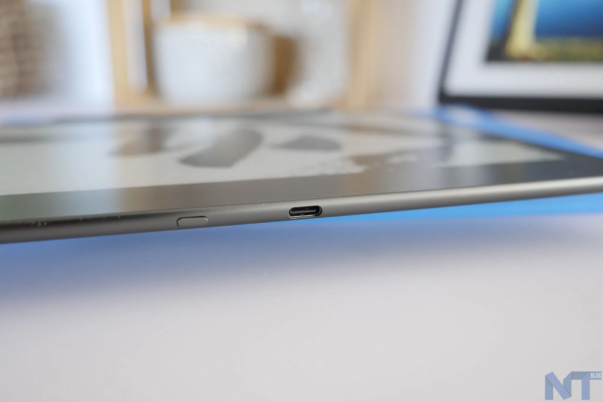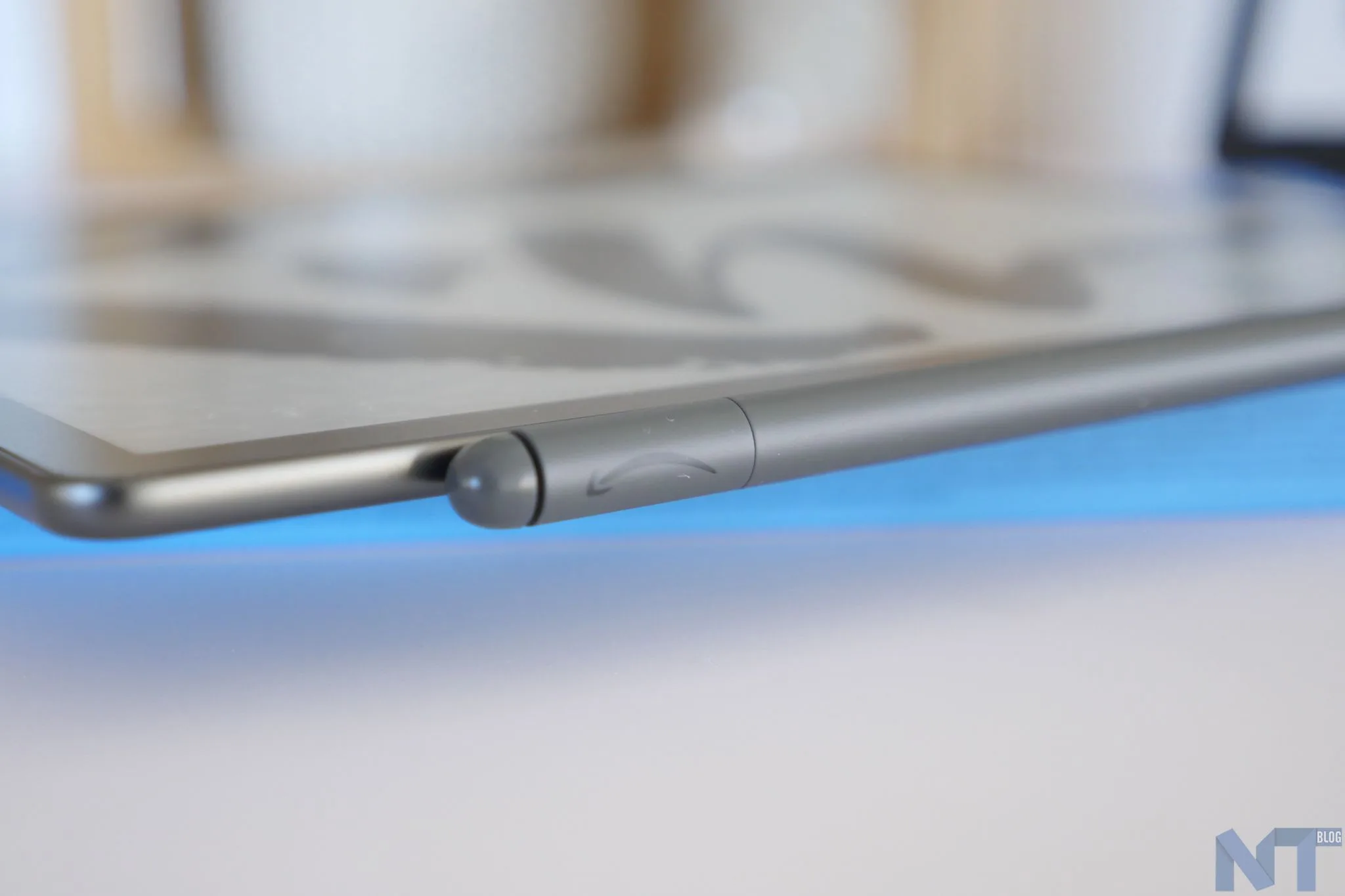 Sur le cadre gauche se trouvent un bouton d’alimentation/verrouillage (qui s’enfonce avec un clic très agréable) et le port de charge USB-C. Les trois autres bords sont totalement vides, à l’exception des aimants sur le cadre de droite où vous fixez magnétiquement le stylet Basic ou Premium — j’y reviendrais plus tard.