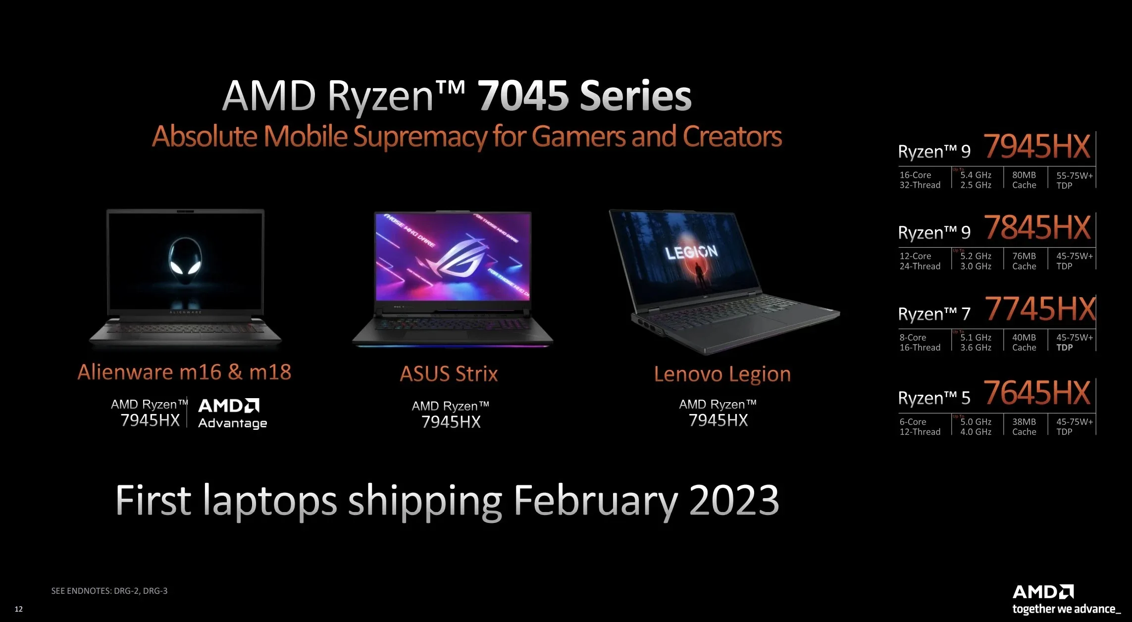 La gamme AMD Ryzen 7045 arrivera dans les ordinateurs portables à partir de février 2023, les cinq premiers ordinateurs portables étant fabriqués par Alienware, ASUS et Lenovo.