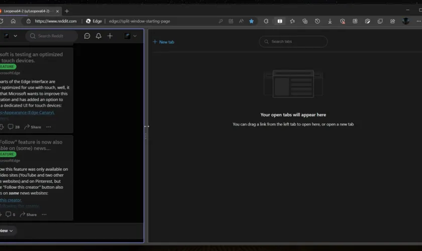 Comme l’a découvert l’utilisateur Reddit u/Leopeva64-2, Microsoft travaille sur une fonction d’écran partagé pour le navigateur Edge. L’idée derrière cette fonctionnalité est très simple : elle vous permet d’afficher deux onglets dans une seule fenêtre de navigateur.
