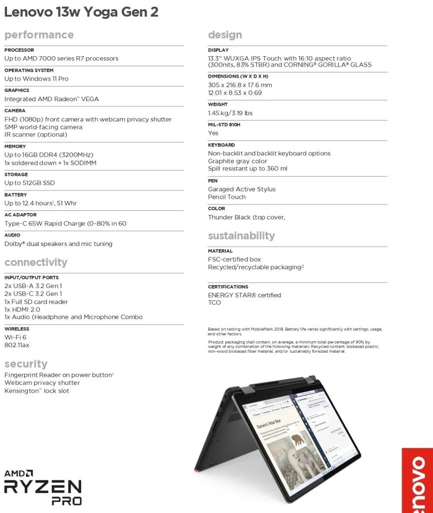 Lenovo a également annoncé le 13 w Yoga Gen 2, un ordinateur portable doté d’un écran tactile WUXGA IPS de 13 pouces avec verre Gorilla Glass. Il est équipé de processeurs AMD Ryzen 7 7000 Series, idéaux pour les enseignants et les administrateurs qui ont besoin d’une puissance supplémentaire pour gérer les charges de travail et l’infrastructure.