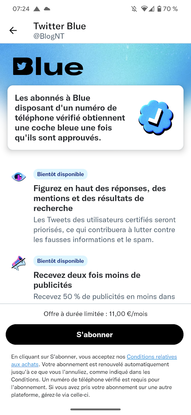 Vous pouvez vous abonner à Twitter Blue sur iOS, Android et la version Web du réseau social.