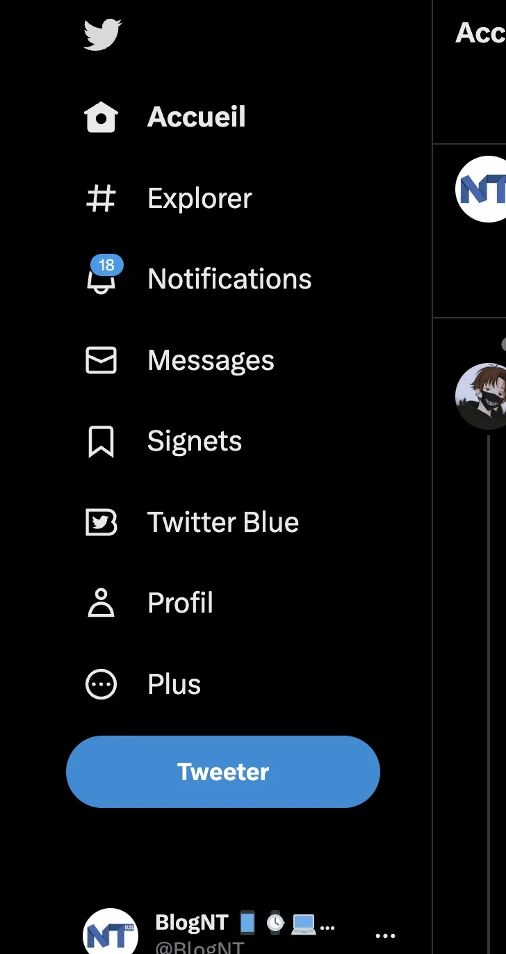 - Dans le menu qui s’affiche, sélectionnez Twitter Blue