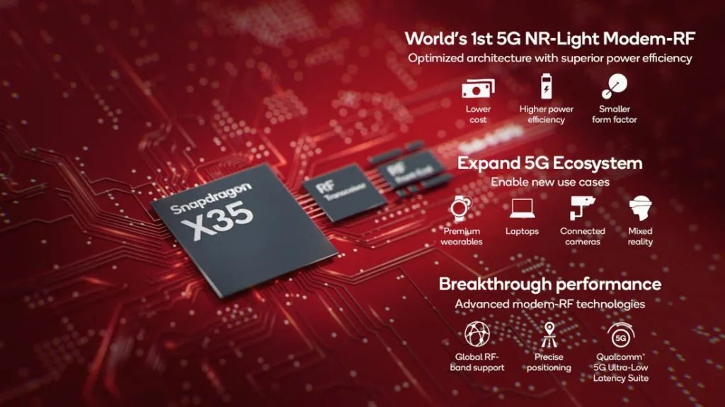Qualcomm encourage l’utilisation du Snapdragon X35 5G Modem-RF dans des dispositifs tels que les smartwatches et autres wearables haut de gamme, les ordinateurs portables, les caméras connectées, les casques de réalité mixte (AR/VR) et les lunettes AR. Le Snapdragon X35 5 G Modem permettra aux petits appareils 5G de fonctionner plus longtemps et depuis plus d’endroits dans le monde. La puce offre des vitesses de téléchargement plus rapides avec une faible latence pour offrir une connectivité 5G rapide et en temps réel.