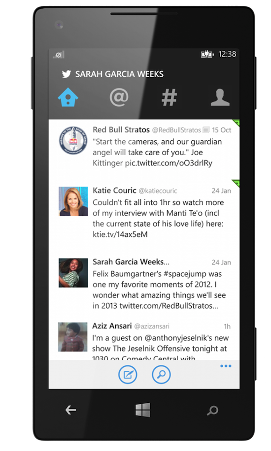 Twitter vient d’annoncer que sa nouvelle version de son application Twitter pour Windows Phone est disponible pour tous. Celle-ci dispose d’un nouveau design, dont la société affirme qu’elle “apporte l’application conformément aux autres applications Twitter d’ors-et-déjà disponibles”. Celle-ci arrive également avec quelques nouvelles fonctionnalités de navigation, de nouveaux icônes et le support d’une live tile. Vous pouvez de suite la récupérer en vous rendant ici.