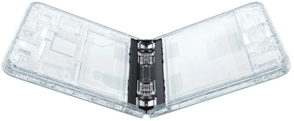 La Flexion Hinge est dotée d’un élément flexible en acier inoxydable, gravé avec précision et injecté d’un matériau souple et flexible. OPPO a déclaré qu’elle a utilisé de l’acier aéronautique à haute résistance au niveau de la position clé du roulement pour garantir que la charnière offre une grande fiabilité avec une résistance à la traction et à l’élasticité supérieure respectivement de 15 % et 25 %, par rapport à la conception traditionnelle de la charnière.