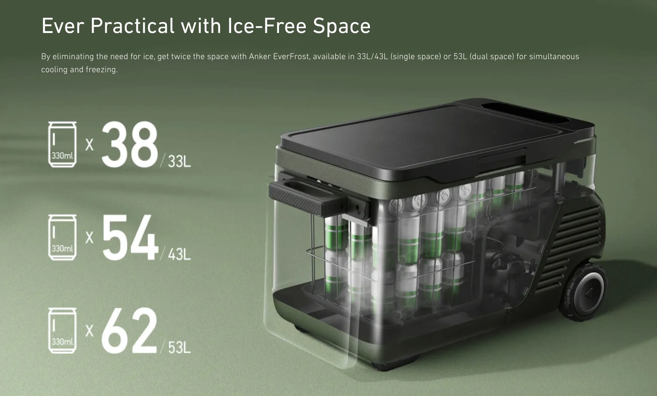 La EverFrost sera disponible en trois tailles (33 L, 43 L et 53 L), la plus petite pouvant contenir 38 canettes de soda et la plus grande 62.