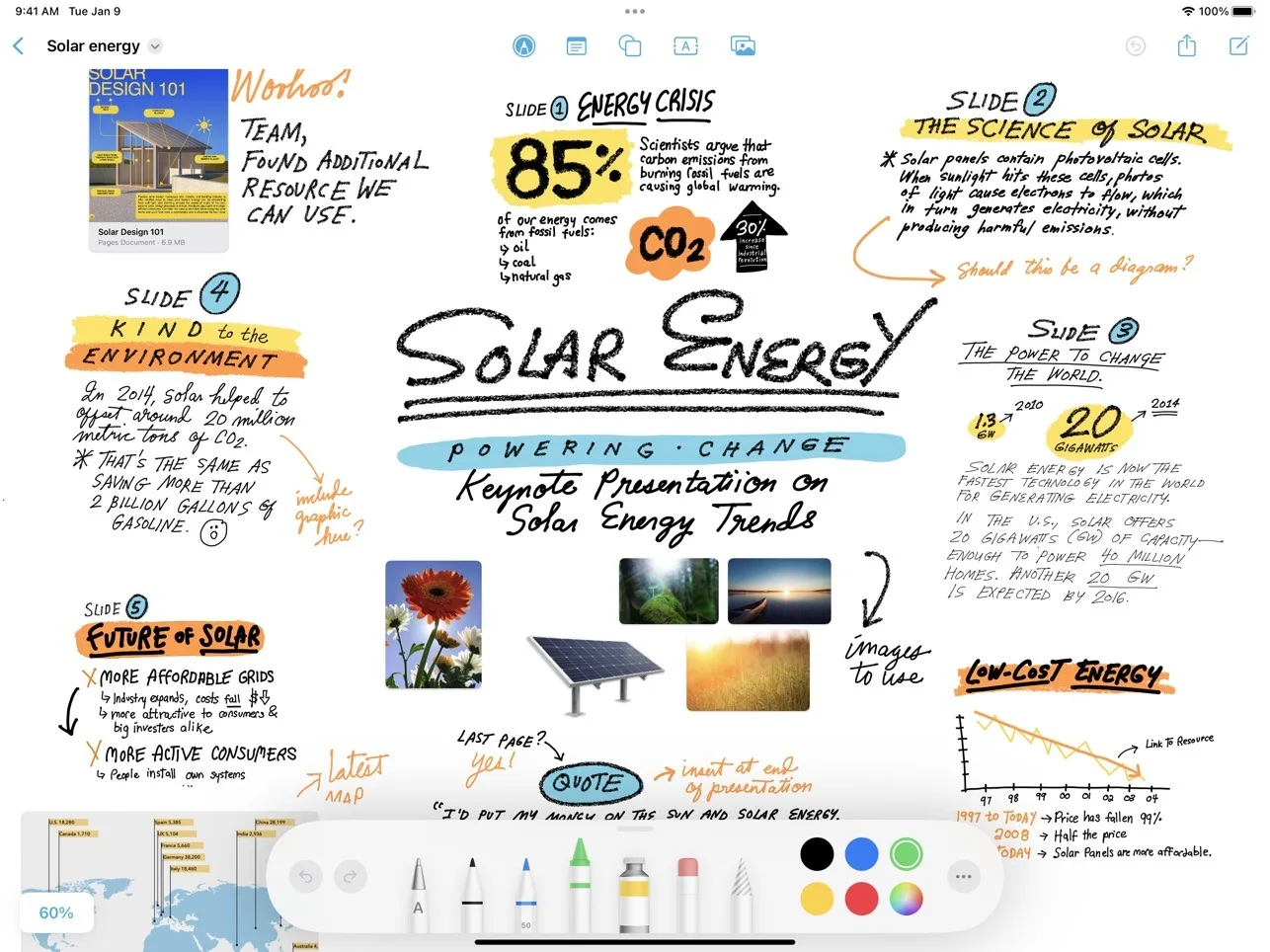 Apple a conçu un ensemble d’outils qui vous permettent de faire du brainstorming et d’exprimer toutes sortes d’idées sur une toile qui devrait apparaître sur tous vos appareils. Ces outils sont parfaits pour créer des moodboards simples, des diagrammes en araignée et des mindmaps pour développer des idées à l’échelle personnelle ou collaborative.