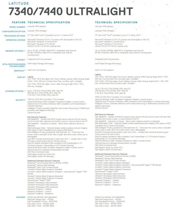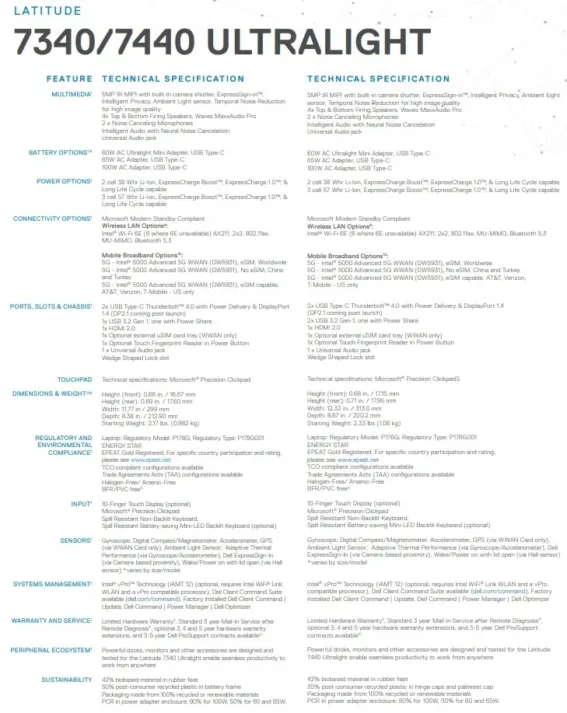 Spécifications du Dell 7340/7400 Ultralight