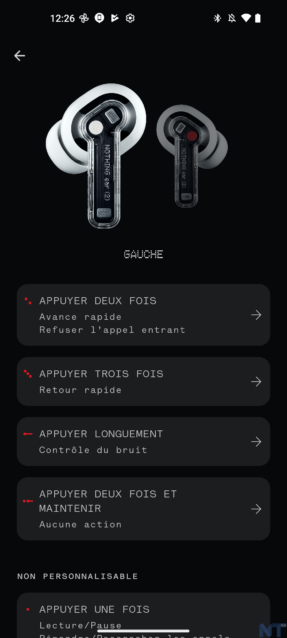 Les boutons pour contrôler le volume ont disparu. Vous devez donc les personnaliser à l’aide de l’application Nothing X sur Android et iOS. Vous pouvez modifier les actions de triple pincement, de pincement et de maintien et de pincement et de maintien pour chaque écouteur, mais vous ne pouvez pas personnaliser le simple ou double pincement.