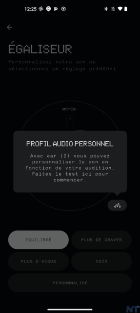 Il propose quatre préréglages d’égaliseur — équilibré (par défaut), plus de graves, plus d’aigus et voix — afin que chaque chanson puisse être entendue comme il se doit. Vous pouvez également créer des égaliseurs personnalisés. Le profil sonore personnel avec identification de l’audition vous permet d’ajuster les paramètres de l’égaliseur en temps réel en fonction de l’audition de l’utilisateur, pour une expérience d’écoute optimale.