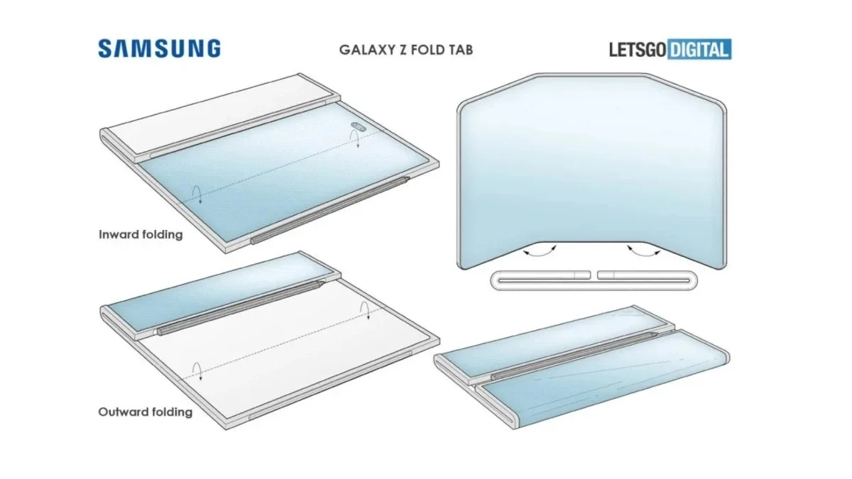 La Galaxy Z Tab pourrait être dotée d’un écran à triple pliage qui permettrait à l’appareil d’être plié de telle sorte que l’un des trois pliages agisse comme un écran de couverture pour fournir certaines fonctionnalités du smartphone. Lorsqu’il est complètement ouvert, l’écran de la tablette serait plus orienté vers le paysage que vers le portrait du Galaxy Z Fold 4. En 2021, des rendus ont fait surface d’une tablette pliable appelée Galaxy Z Fold Tab qui comprenait trois écrans, deux charnières et une station d’accueil magnétique sur le châssis de la tablette pour charger le stylet S Pen.