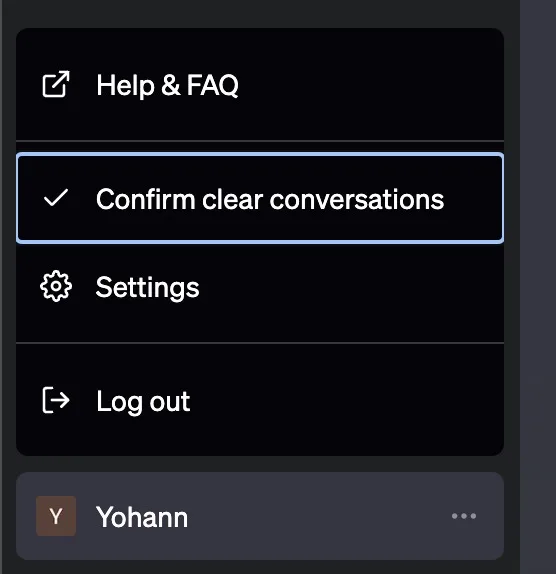 - Cliquez sur « Clear conversations » pour commencer à supprimer vos chats
