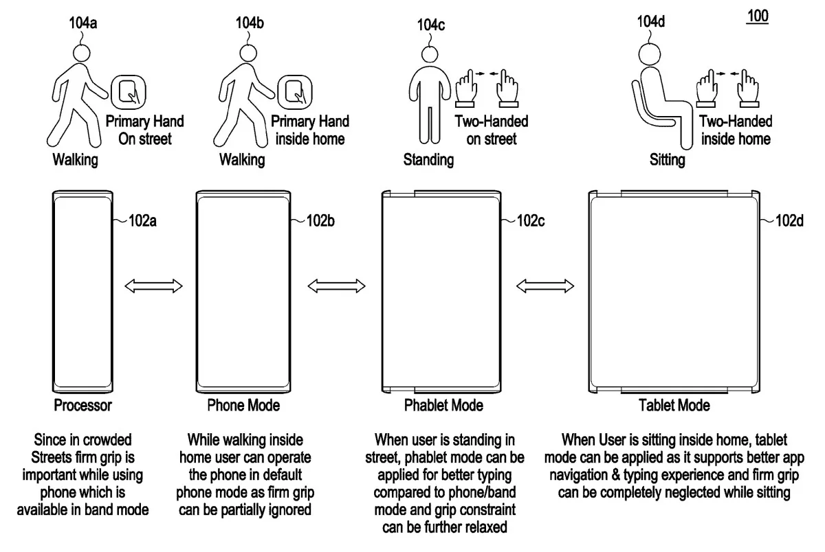 Le brevet de l’entreprise ne porte pas sur la technologie qui rend possible l’utilisation d’écrans de smartphones enroulables. Le brevet porte plutôt sur une « méthode de recommandation du facteur de forme d’un smartphone enroulable ». En d’autres termes, il décrit diverses circonstances dans lesquelles un téléphone peut réagir à votre environnement ou aux applications et activités avec lesquelles vous interagissez pour déterminer si et quand passer automatiquement d’un mode de taille d’écran à un autre.