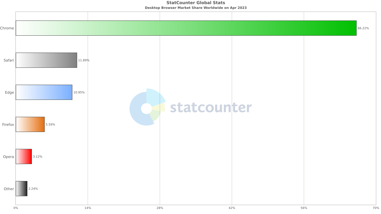 De nombreux navigateurs de bureau continuent de se disputer les utilisateurs et, en avril 2023, Safari d’Apple a dépassé Microsoft Edge en termes de parts de marché mondiales, selon les données recueillies par StatCounter.