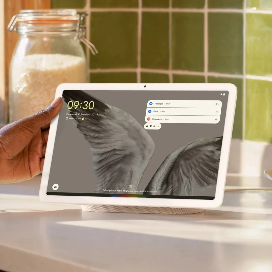 La tablette Pixel prend en charge un mode spécial appelé mode Hub, qui transforme la tablette en un écran intelligent. En mode Hub, vous pourrez contrôler tous les appareils connectés de votre maison directement depuis la tablette. Par exemple, vous pourrez accéder au flux vidéo de votre sonnette, régler votre thermostat ou allumer et éteindre les lumières.