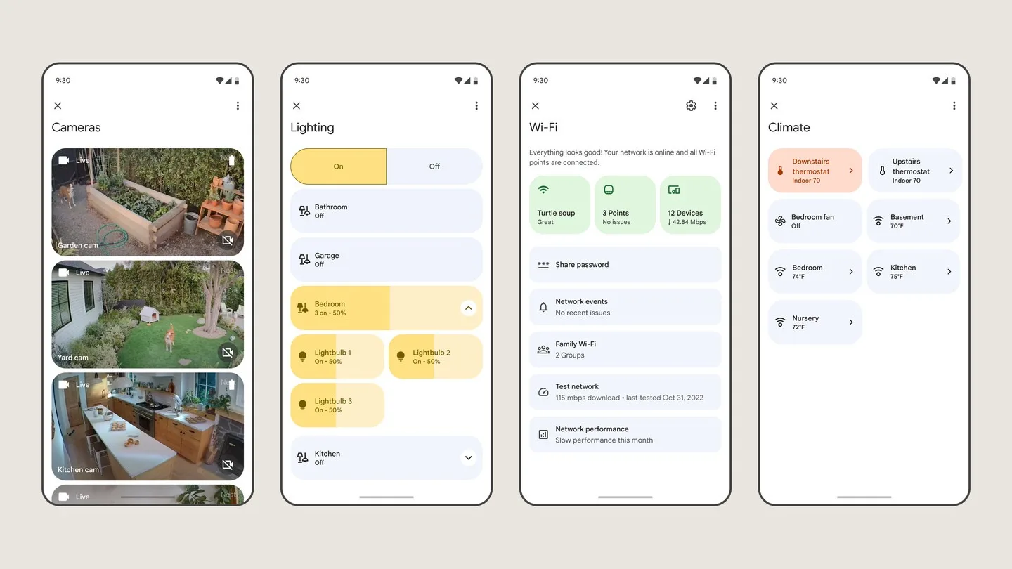 Parallèlement, vous pouvez utiliser la nouvelle fonctionnalité Espaces pour vérifier et contrôler rapidement des appareils analogues tels que des lumières, des appareils Wi-Fi et des caméras.