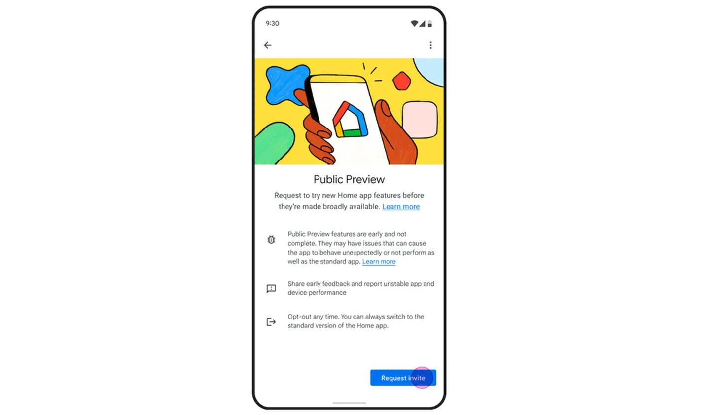 - L’application Google Home s’ouvre sur un bouton « Demander une invitation »