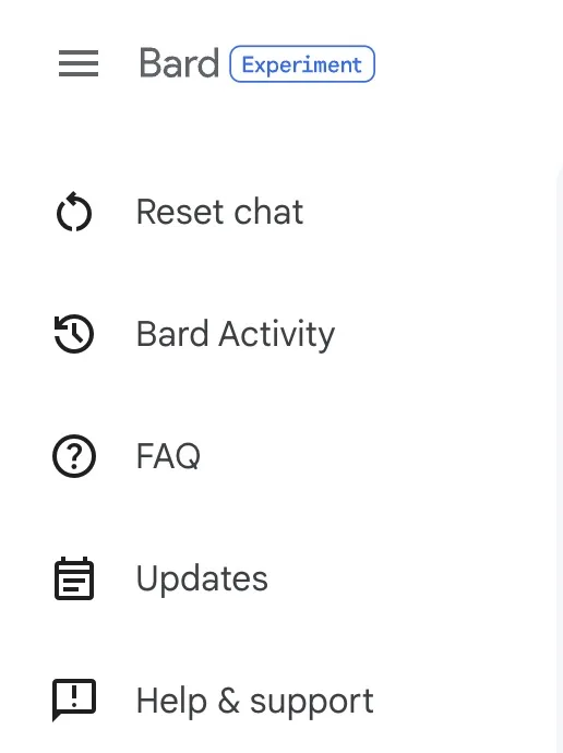 Bien que le processus d’utilisation de Google Bard soit assez simple, je souhaite mettre en évidence les options les plus courantes que vous devez connaître pour tirer pleinement parti du chatbot IA. Commençons par la barre latérale gauche :