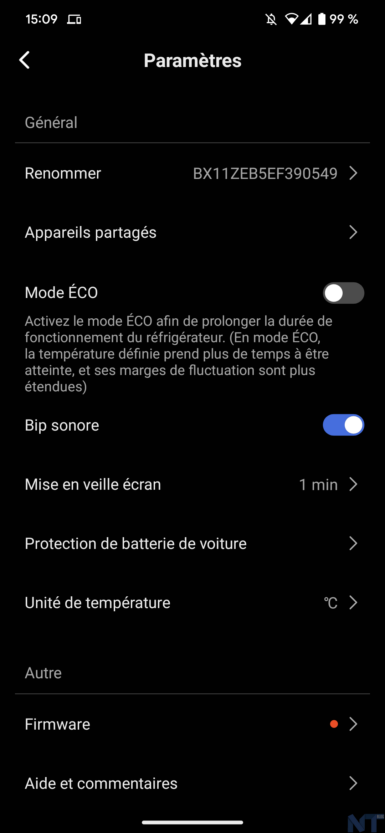 L’application EcoFlow incluse permet de tout contrôler en un clin d’œil. Elle fonctionne en Bluetooth ou Wi-Fi, et une fois que vous avez tout couplé, vous pouvez allumer/éteindre la glacière à distance, régler les températures ou activer le mode ECO pour économiser la batterie.