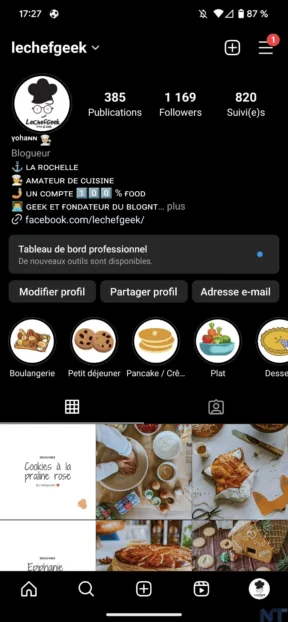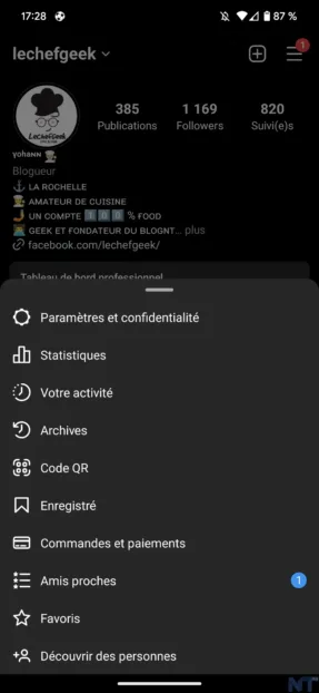 - Cliquez sur votre photo de profil dans l’application Instagram