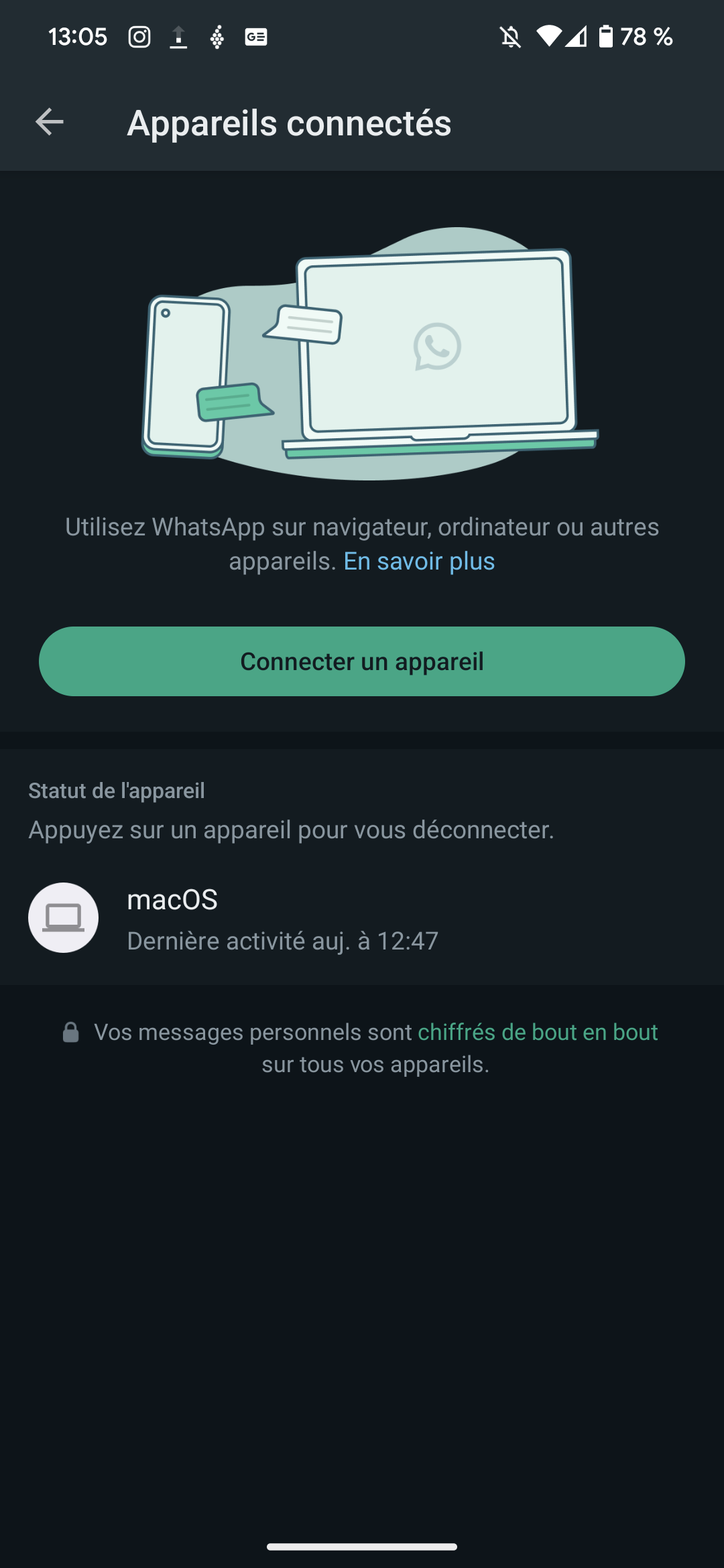 - WhatsApp précise que tous les messages, médias et appels sont également chiffrés de bout en bout sur les appareils secondaires.
