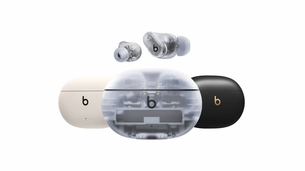 Les nouveaux Beats Studio Buds+ d’Apple sont disponibles en crème, en noir/or et dans un nouveau modèle transparent très soigné.