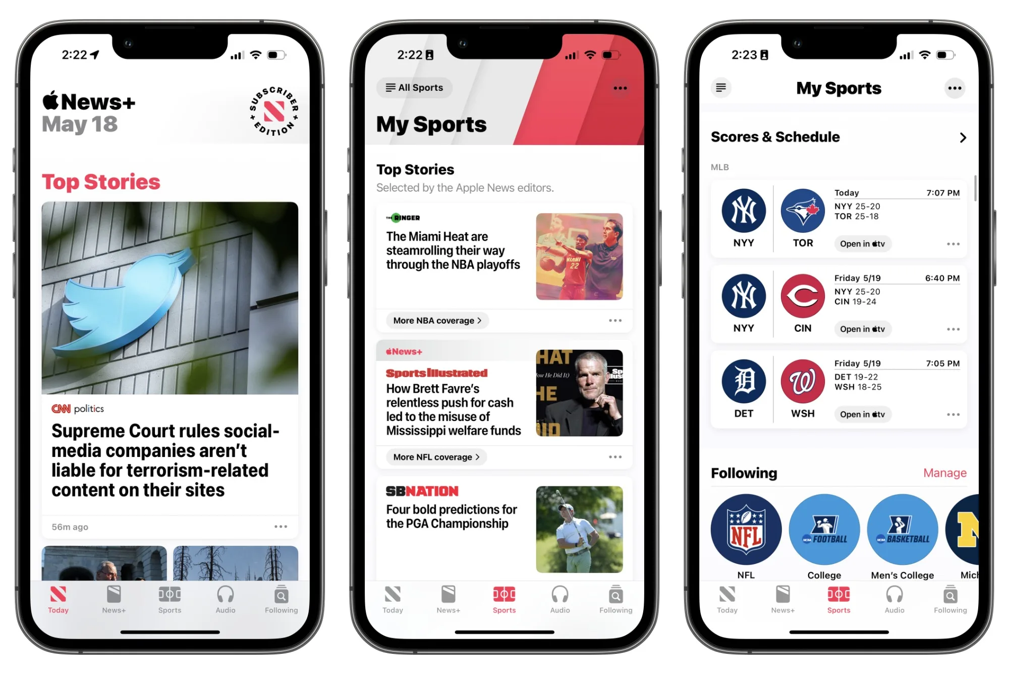 L’autre nouveauté majeure est l’onglet Sports de l’application Apple News, qui vous permet désormais d’accéder facilement aux articles, aux scores, aux classements et à bien d’autres choses encore. Ces informations sont disponibles pour les équipes et les ligues que vous suivez, comme les séries éliminatoires de la NBA qui se déroulent en ce moment même. En outre, Apple News propose également les cartes de score et de calendrier My Sports, qui vous permettent d’accéder directement aux pages des matchs pour obtenir plus d’informations sur des rencontres spécifiques.