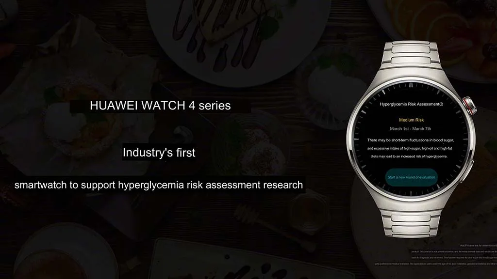 Lorsqu’un utilisateur de la Huawei Watch 4 a une glycémie élevée, comme dans le clip vidéo mentionné plus haut, la montre indique qu’il y a un risque d’hyperglycémie et précise que « la consommation excessive de régimes riches en sucre, en huile et en matières grasses peut entraîner un risque accru d’hyperglycémie ». La Huawei Watch 4 doit être portée à plein temps pendant 7 jours avant que l’alerte d’hyperglycémie ne commence à fonctionner.