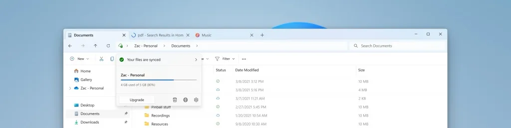 « La nouvelle barre d’adresse reconnaît intelligemment les dossiers locaux et les dossiers dans le nuage avec un statut intégré », explique Brandon LeBlanc, chef de programme senior chez Microsoft. « Pour les utilisateurs de OneDrive, vous remarquerez que la barre d’adresse contient désormais l’état de la synchronisation de OneDrive et la liste déroulante des quotas ».