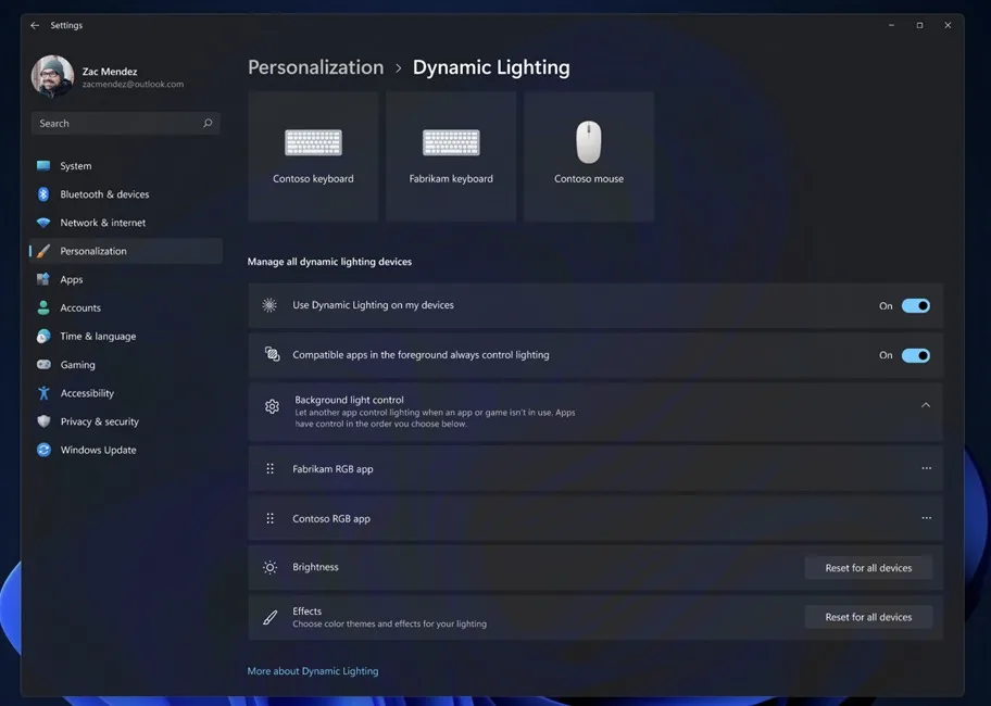 De plus, la société utilise la norme open source HID LampArray, ce qui devrait permettre aux autres fabricants de périphériques d’assurer facilement la compatibilité à l’avenir. La prise en charge des contrôleurs de jeu, de l’éclairage des châssis, des casques et d’autres accessoires pourrait être envisagée à terme. Microsoft précise que l’éclairage dynamique comprend des API qui permettent aux « applications Windows de contrôler les appareils en arrière-plan et en avant-plan, ainsi qu’une page dans les paramètres Windows permettant aux utilisateurs de personnaliser le comportement de leurs appareils ».