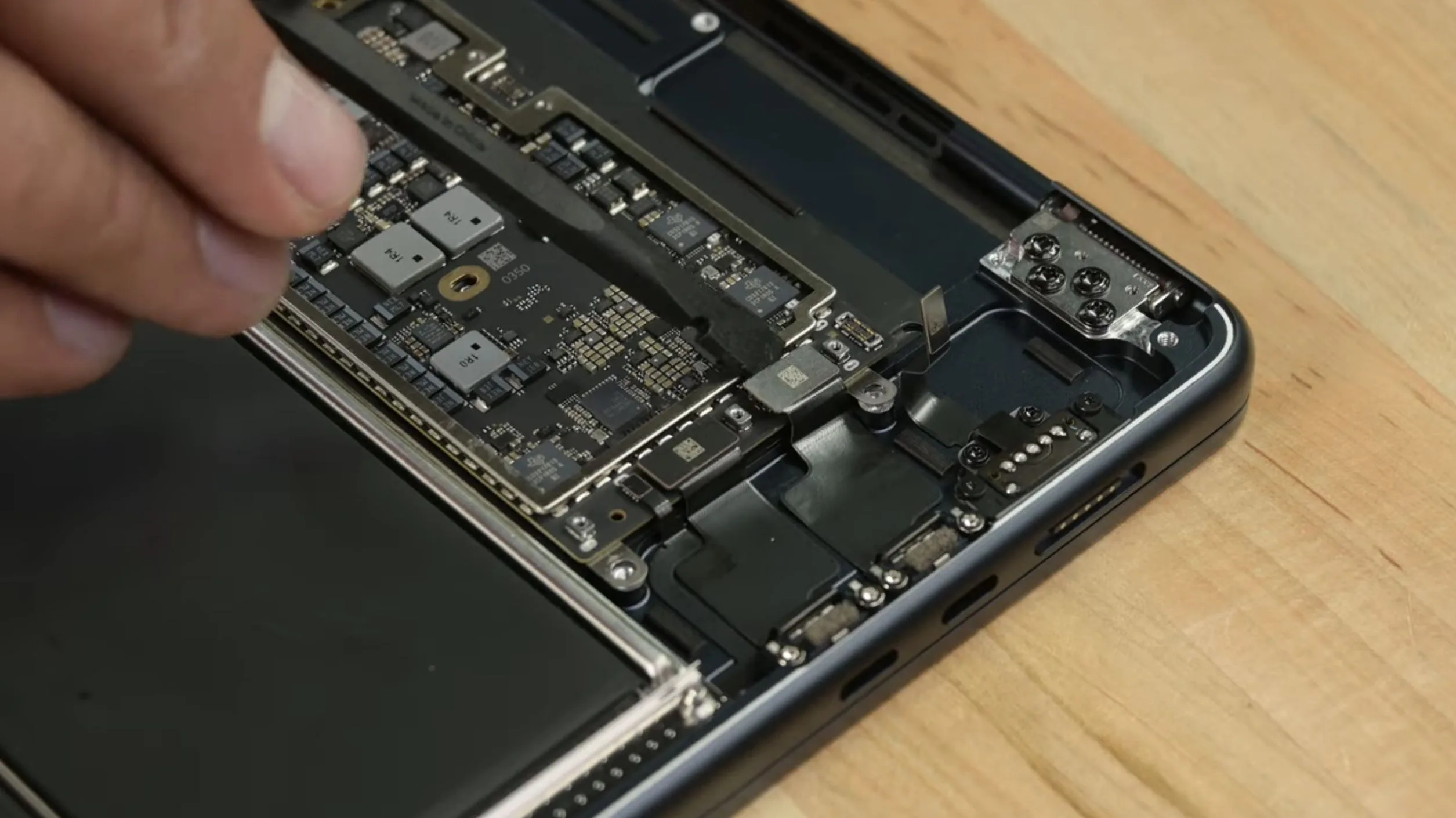 Selon la vidéo iFixit, la seule différence notable étant la présence de deux haut-parleurs supplémentaires. Le démontage révèle que l’ordinateur portable est équipé d’une seule puce NAND de 256 Go pour le modèle de base, ce qui peut entraîner des vitesses de lecture et d’écriture plus lentes pour les SSD par rapport aux modèles de 512 Go, 1 To ou 2 To. La mémoire vive et le stockage ne sont pas non plus évolutifs pour l’utilisateur, ce qui est conforme aux autres ordinateurs portables d’Apple.