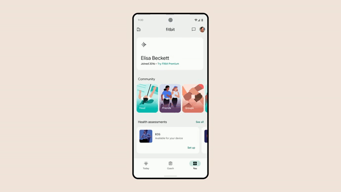 L’onglet Vous est peut-être le moins connu de tous. D’après une vidéo de démonstration, c’est là que vous pourrez ajuster vos paramètres personnels, tels que le nombre de pas quotidiens, l’heure du coucher, les minutes de zone active, etc. C’est également là que vous pourrez voir les nouveaux badges d’accomplissement. Fitbit indique que c’est également l’endroit où vous pouvez « gérer les connexions avec la communauté », mais on ne sait pas exactement quelles fonctions sociales l’application remaniée proposera après l’abandon des Challenges au début de l’année.