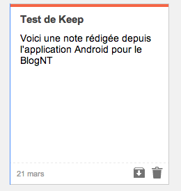 Comme Evernote, vous pouvez également gérer l’ensemble de vos notes et de vos rappels mentaux depuis votre navigateur – à l’adresse suivante : drive.google.com/keep/ – ou un dispositif Android. L’application Google Keep est d’ors-et-déjà disponible sur le Google Play Store pour les périphériques fonctionnant sous Android 4.0 (Ice Cream Sandwich) et plus.