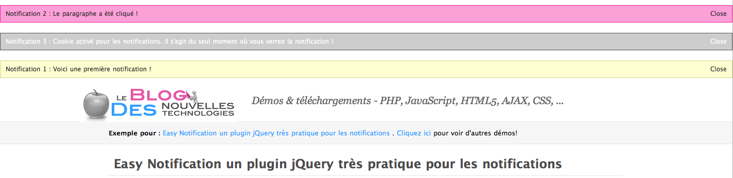 <div id="easyNotification-1" style="display: block;">Voici une première notification !<span class="close">Fermer</span></div>