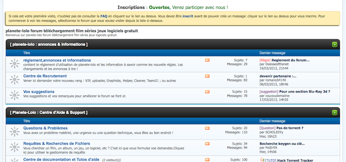 Le forum qui recensait jusque là 800 000 membres, était considéré comme l’un des plus importants forums francophones dédiés au téléchargement illégal. Au moment des faits, Planete-Lolo aurait permis “la mise en ligne de 225 000 films et de 70 000 albums musicaux”. Malgré un retour rapide du forum – trop pour être vrai, depuis les 26 juin 2012 les utilisateurs ont été laissés à l’abandon devant se contenter des sites tiers offrant des services identiques mais qui se font de plus en plus rares…