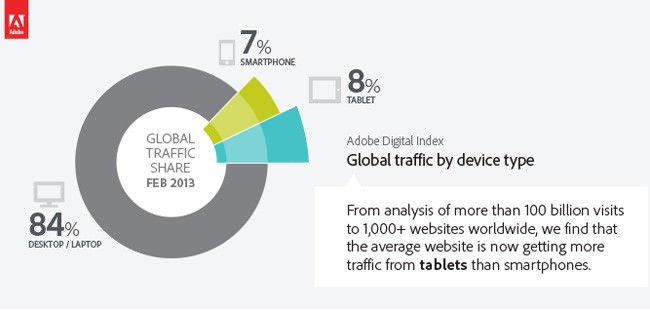 Selon l’analyse publiée par Adobe, la part mondiale de l’Internet sur les dispositifs mobiles a atteint 15%. Avec les ventes des tablettes qui ne cessent de croître, qui sait quand ce nombre va doubler ou tripler.