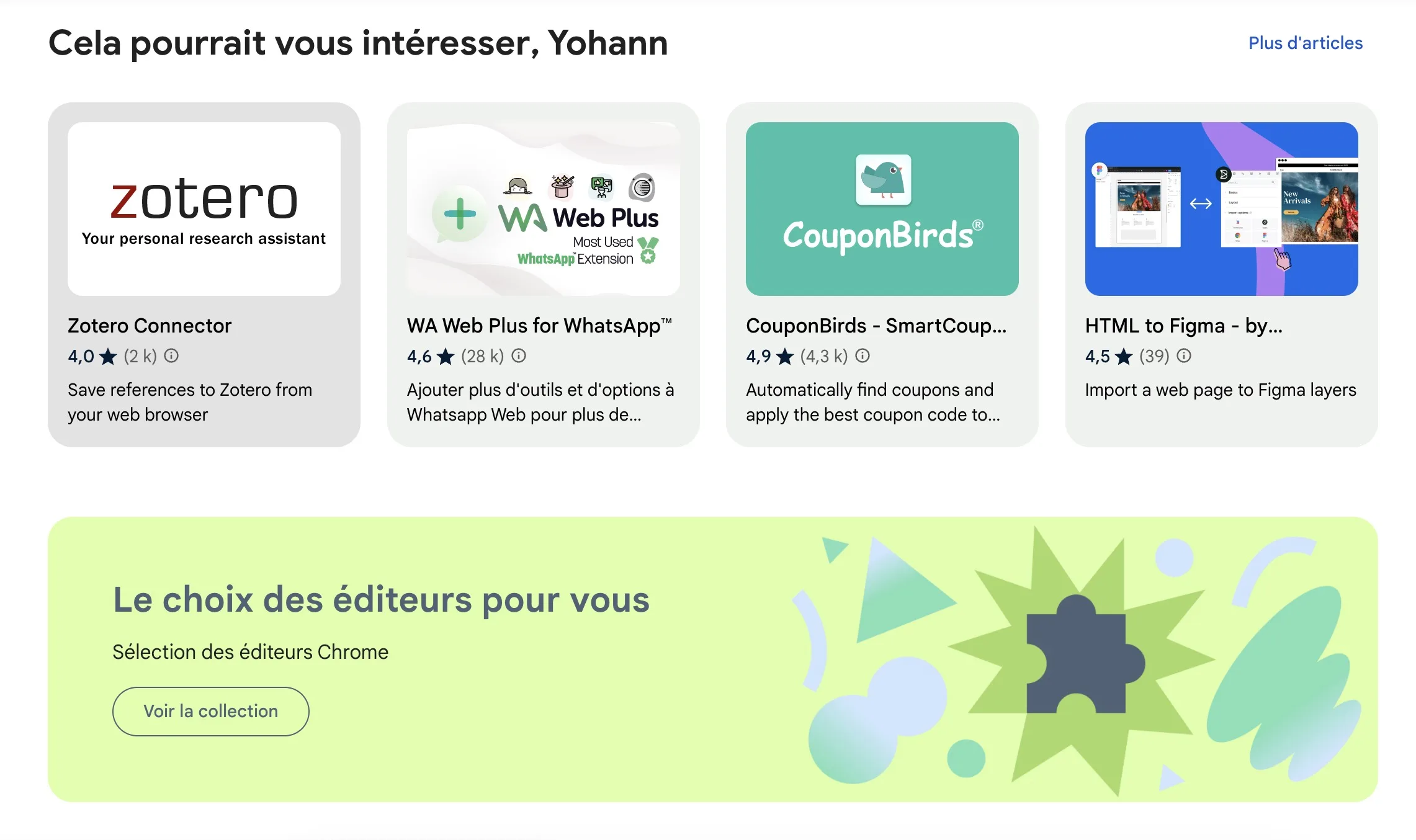 L’entreprise a mis en ligne le « nouveau » design du Chrome Web Store en preview. Google l’a annoncé il y a quelques jours dans un article de blog officiel. Pour voir le nouveau Chrome Web Store en action, il vous suffit de visiter la boutique en ligne et de cliquer sur la bannière « Essayer » dans le coin supérieur gauche de l’écran. Vous pouvez également vous rendre directement sur le site chromewebstore.google.com depuis le lien ci-joint.