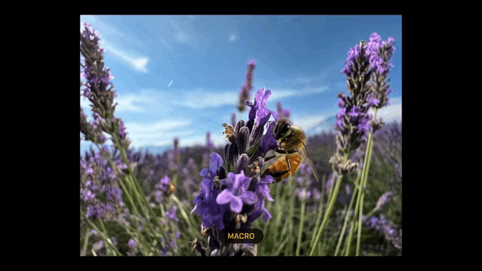 Les modèles Pro et Pro Max intègrent l’équivalent de 7 appareils photo, ce qui en fait la plateforme de photo pour iPhone la plus polyvalente jamais commercialisée. Le capteur de la caméra principale est énorme, avec 48 mégapixels. Il est doté d’une stabilisation optique de l’image de deuxième génération, d’une ouverture de f/1.78 et d’une distance focale de 24 millimètres. L’iPhone 15 Pro est équipé d’un téléobjectif 3x d’une longueur focale de 77 millimètres. Le Pro Max peut zoomer encore plus loin grâce à son téléobjectif 5x d’une longueur focale de 120 mm. Ainsi, vous pouvez désormais prendre des photos en gros plan grâce au nouveau réglage Macro qui émule une longueur focale de 13 millimètres.