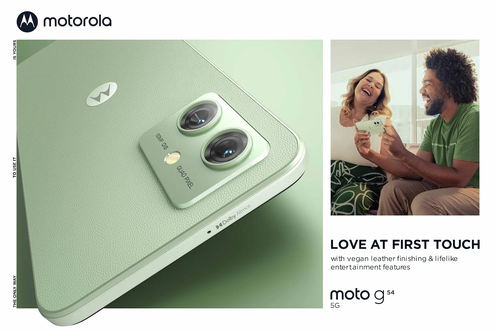 Ensuite, nous avons le Moto G54 5 G. Il est doté d’un écran full HD+ à 120 Hz de 6,5 pouces et de haut-parleurs stéréo. Avec une fréquence de rafraîchissement de 120 Hz et une fréquence tactile de 240 Hz, les utilisateurs peuvent s’attendre à des performances sans faille et à une faible latence.